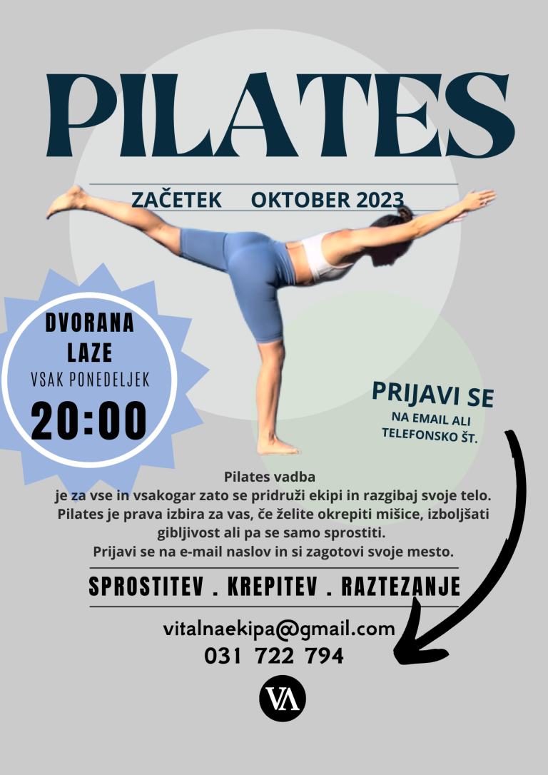 V šolski telovadnici se vsak ponedeljek ob 20.00 izvaja pilates vadba. Več informacij najdete v nadaljevanju novice.