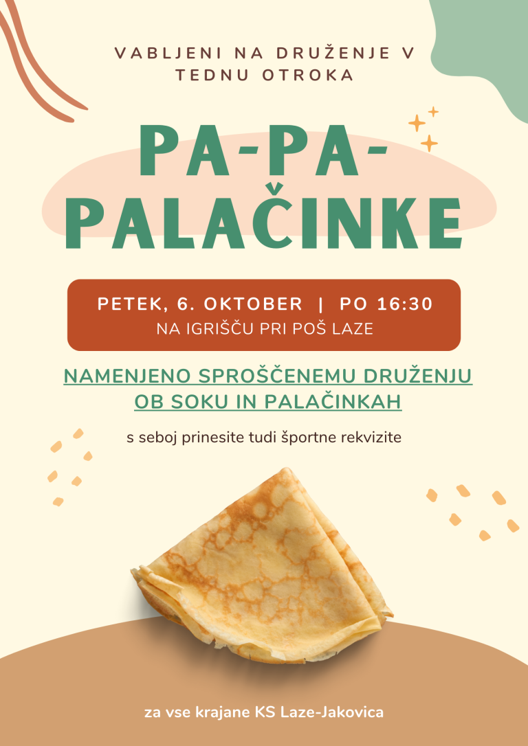 Vabljeni na druženje ob palačinkah in soku na igrišču v petek, 6.10. po 16.30.