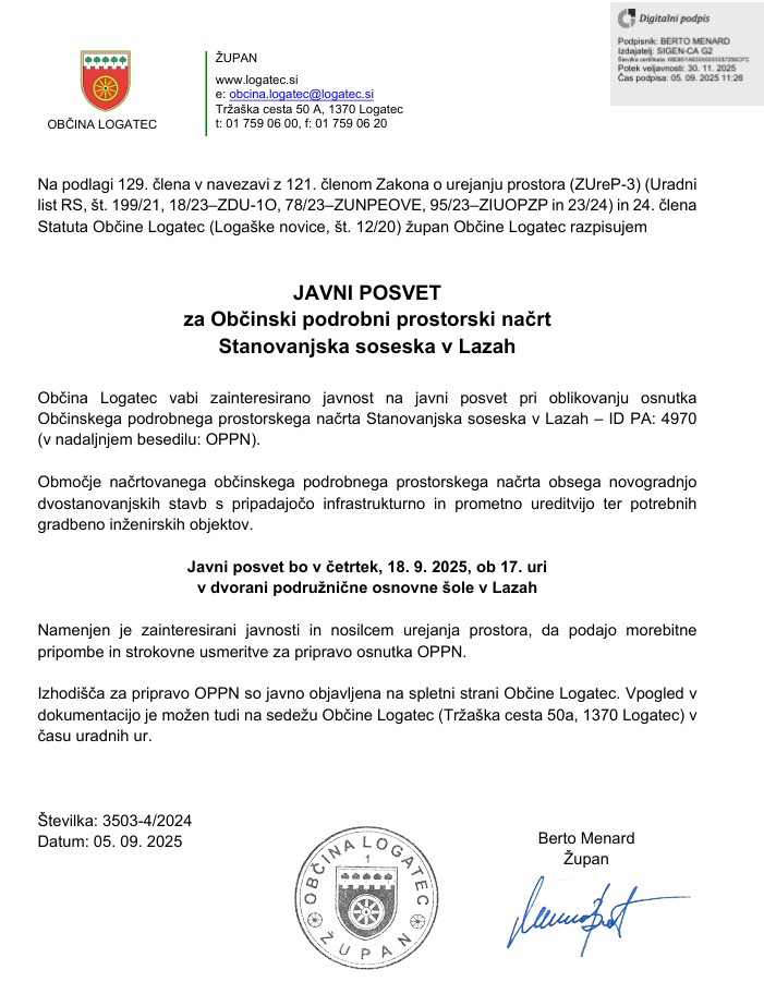 Vabljeni na javni posvet za Občinski podrobni prostorski načrt Stanovanjska soseska v Lazah.