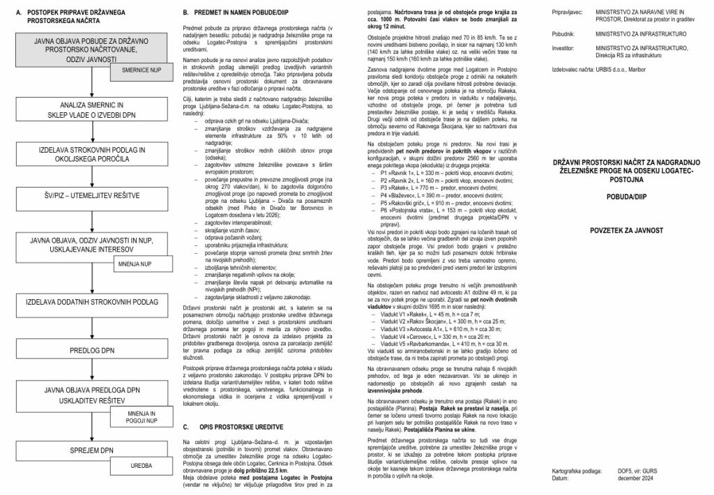 Javna objava pobude za Državni prostorski načrt (DPN) za nadgradnjo železniške proge na odseku Logatec – Postojna bo potekala v času med 17. 3. in 17. 4. 2025.