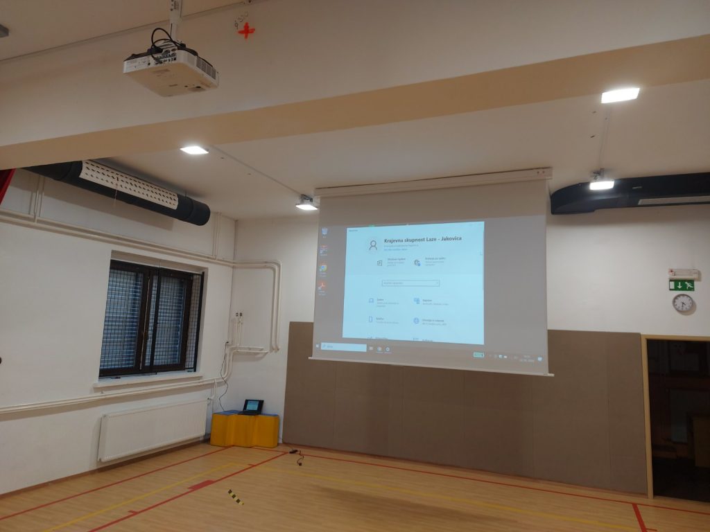 Krajevna skupnost Laze – Jakovica je z nabavo projektorja in projekcijskega platna poskrbela za modernizacijo šolske dvorane. Fiksno nameščena oprema omogoča takojšnjo uporabo ob različnih kulturnih, izobraževalnih in ostalih dogodkih. Prepričani smo, da bo zaradi te pridobitve ponudba dogodkov tako za šolo in vrtec, kot tudi za vse krajane, še bogatejša.